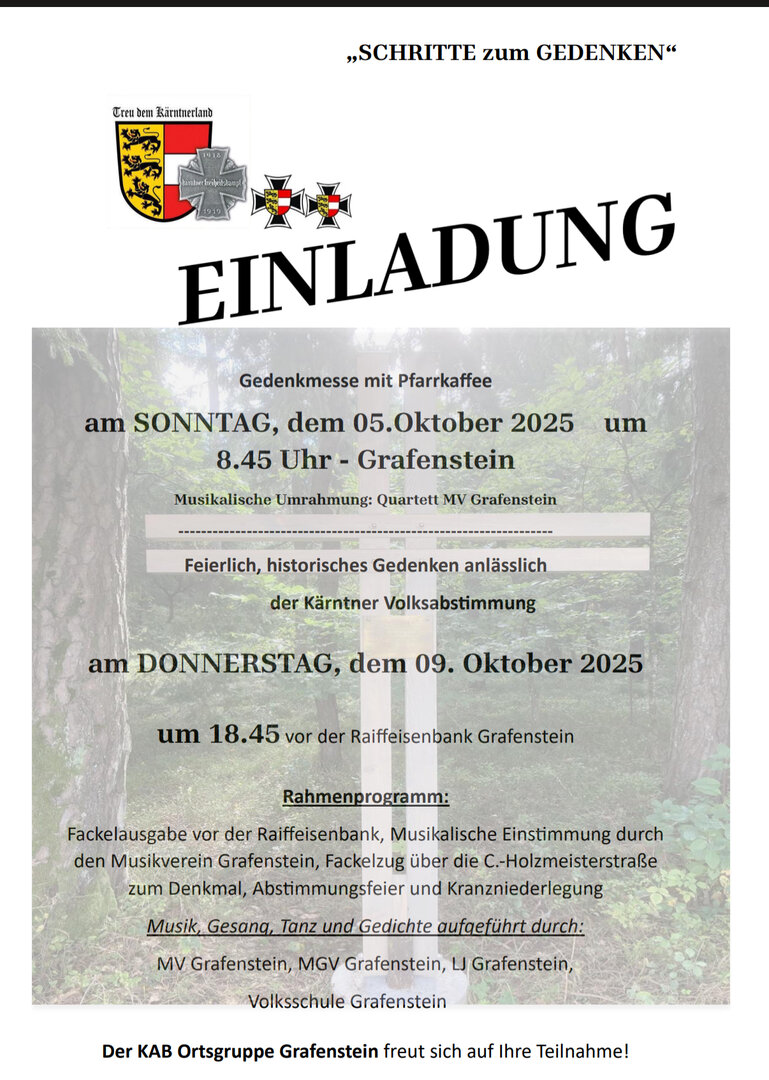 10. Oktober-Feier - Kärntner Abwehrkämpferbund - Ortsgruppe Grafenstein