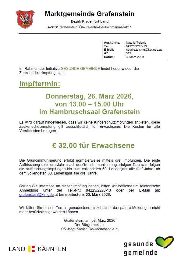 Information zur FSME-Schutzimpfung (Zecken) am 26.03.2026